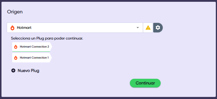 2. **Elige el Plug** que deseas utilizar y haz clic en “Continuar”.