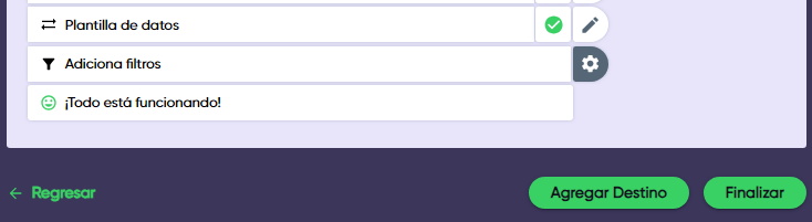 5. Haz clic en “Agregar destino” o “Finalizar” dependiendo de si quieres agregar otro Plug de destino o si ya terminaste con tu Gear.