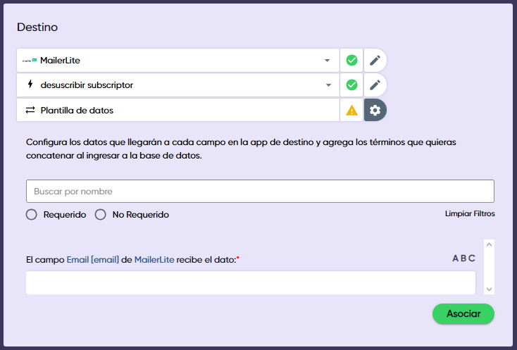 GearPlug buscará en tu lista los suscriptores que coincidan con las direcciones de email provenientes de la app de origen para desuscribirlos.