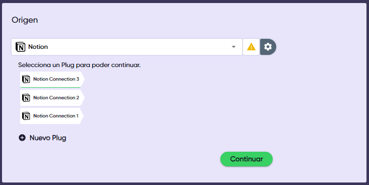 2. **Escoge el Plug** que deseas usar, haciendo clic en "Continuar", y haz clic en “Continuar”.
