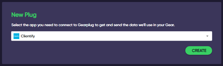 2. **Select Clientify** on the drop-down menu under “New Plug” and click “Create.”
